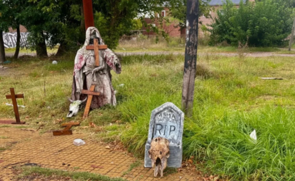 Una lápida, restos óseos de animales y una figura con túnica aparecieron cerca del Hospital San Martín de La Plata y los vecinos sospechan de un rito umbanda.